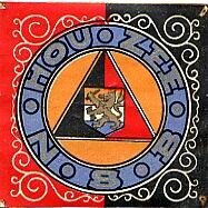 Een vierkant pamfletje met in het midden het N.S.B.-logo: een driehoek in de kleuren zwart en rood met in het midden een wapenschild waarin de klimmende Nederlandse leeuw tegen de achtergrond van de kleuren van de prinsenvlag. Het loge is gezet in een rond oranje veld met een blauwe rand waarin staat: "Hou Zee N.S.B." Dit alles weer op de kleuren zwart en rood met een krullend wit motief.