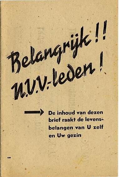 Gedrukte circulaire van de N.V.V. aan leden waarin de oprichting wordt gemeld van het Nederlandsche Arbeidsfront. Bij de circulaire is een begeleidende brochure gevoegd