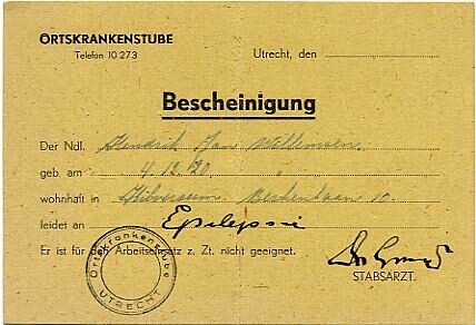 Verklaring tot vrijstelling van de arbeidsinzet aan de heer Willemsen wegens ziekte.