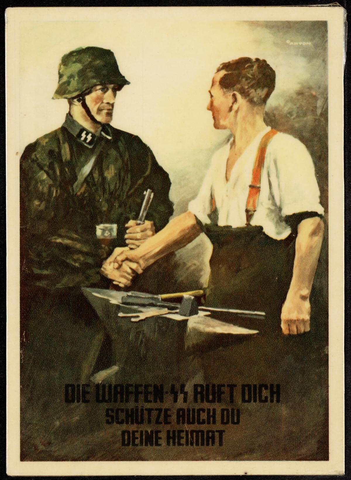 Een onbeschreven prentbriefkaart in kleur voor de werving voor de S.S. Uitgegeven door het S.S. Hauptamt-Ergänzungsamt der Waffen S.S.
