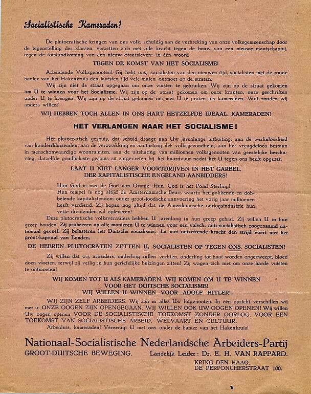 Nationaal-Socialistische Nederlandsche Arbeiderspartij (NSNAP) - Oorlogsbronnen.nl