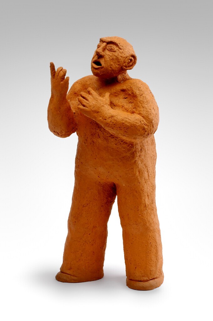 Een model van rood gebakken klei voor een beeld ter herinnering aan de heer J.H. Scheps. Het beeld stelt een staande man voor met de rechterhand wijzend naar boven. De houding als geheel lijkt op een man die een rede houdt of in discussie is. Het model is gemaakt door Heleen Keyser en Maarten Wilbergen.