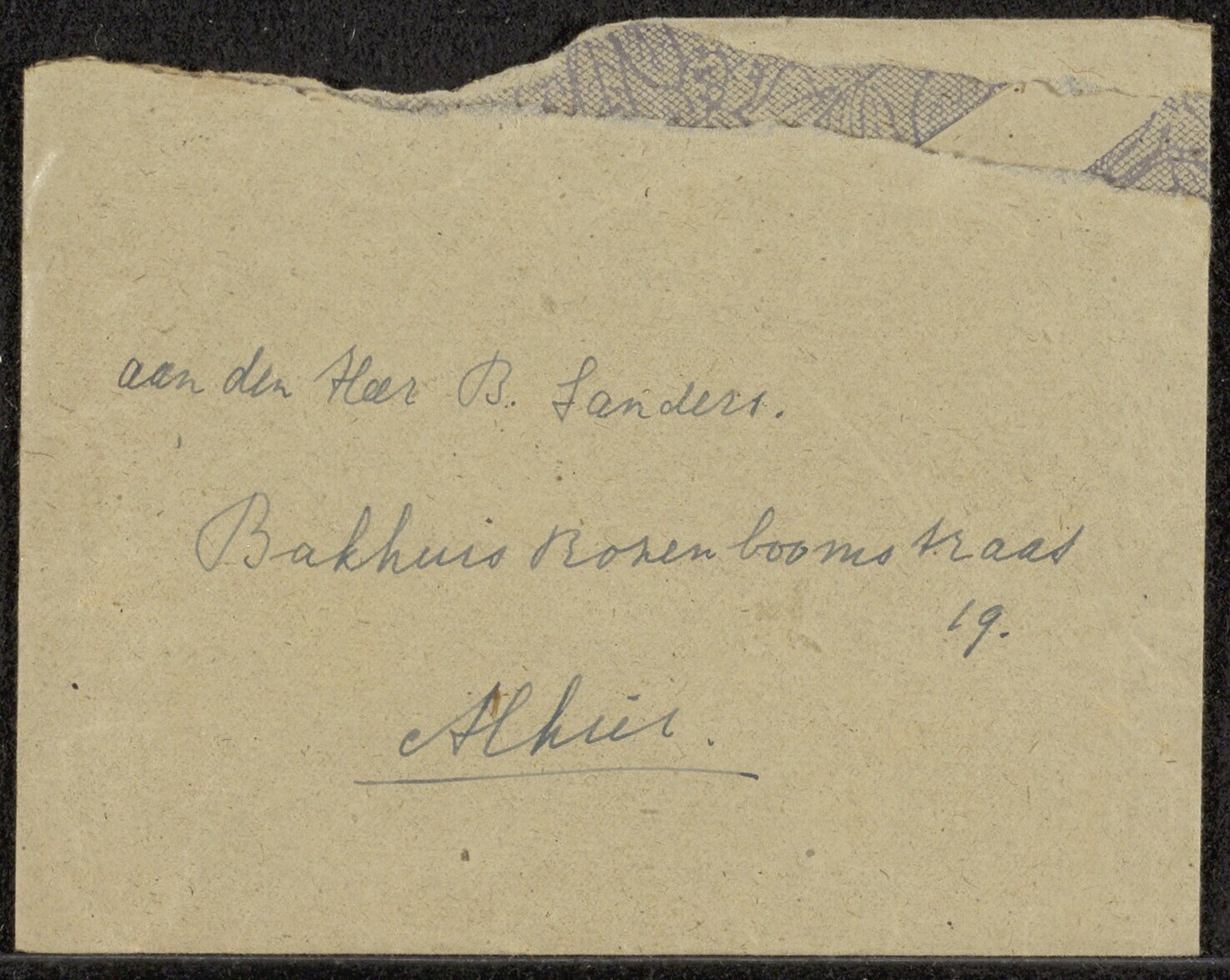 Enveloppe met een handgeschreven brief waarin de schrijver onder andere verhaal doet over de opgelopen longontsteking en het verloop van de oorlog.