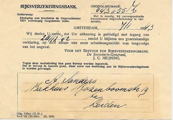 Brief van de Rijksverzekeringsbank in beige enveloppe met adresvenster. In de enveloppe een verklaring van beëindiging van een arbeidsongeschiktheidsuitkering