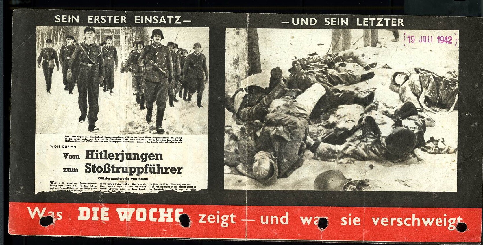 Geallieerd (Duitstalig) pamflet waarin de Duitsers worden gewezen op de verkeerde voorstelling die de eigen media van de oorlog geven.