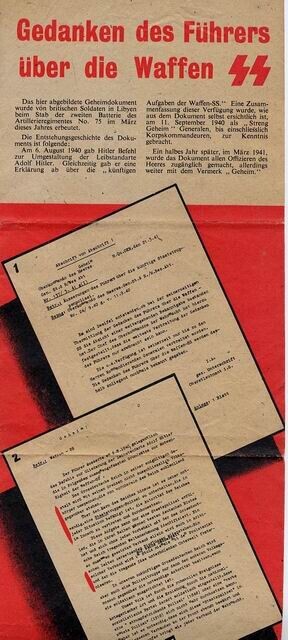 Twee exemplaren van een geallieerd (Duitstalig) pamflet waarin gesproken wordt over de 'vrijbrief' die Hitler zou hebben gegeven aan de Waffen-SS.