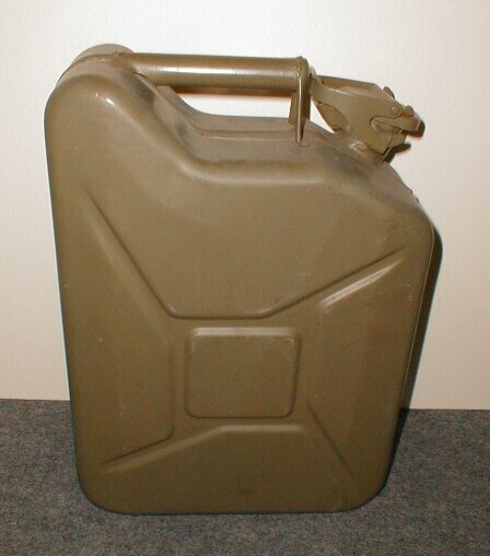 Een groene metalen jerrycan voor benzine van het Amerikaanse leger.