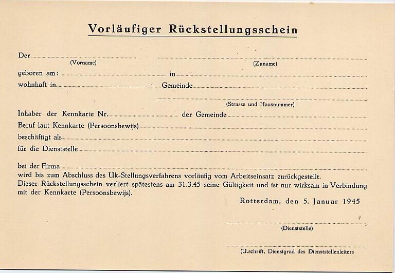 Vorläufiger Rückstellungsschein