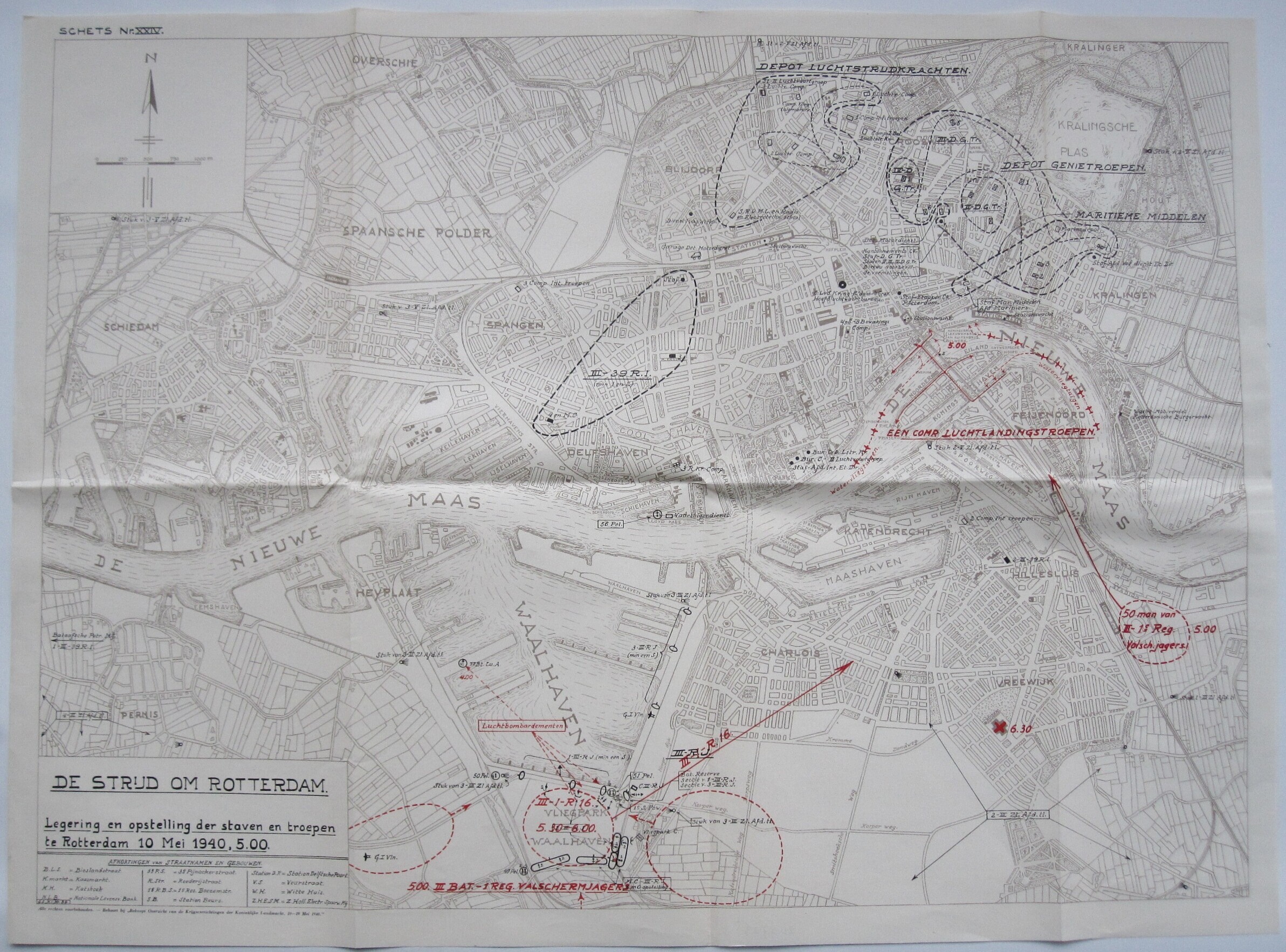 Drie kaarten van de militaire situatie in Rotterdam op 10 en 11 mei 1940.