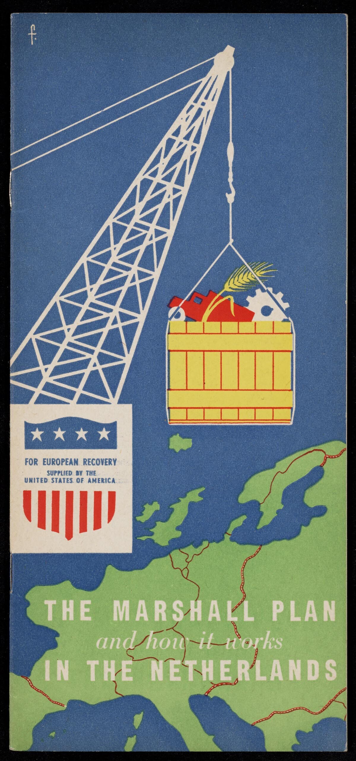 Twee geïllustreerde boekjes over het Marshallplan: een Engelstalige en een Nederlandstalige.