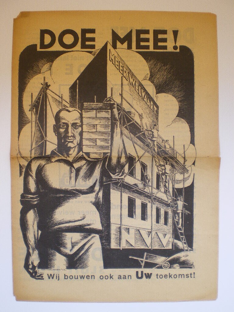 Twee pamletten van het Nederlands Verbond van Vakverenigingen (N.V.V.) met de oproep om lid te worden.