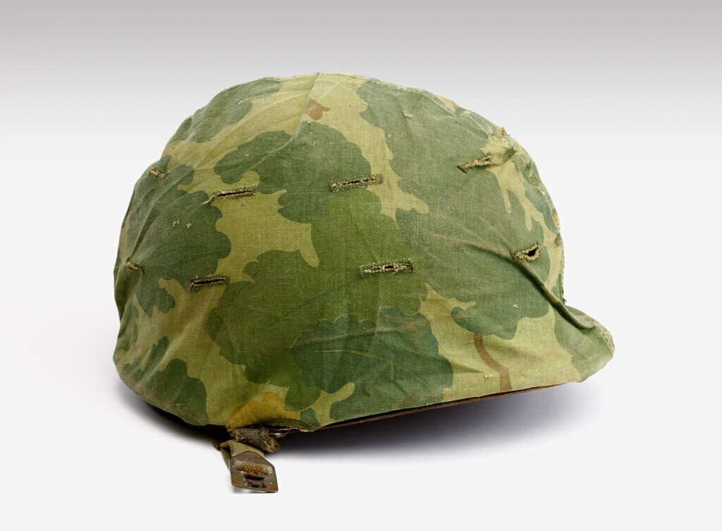 Een compleet Amerikaans legeruniform uit omstreeks 1944. a: een groene katoenen pantalon. b: een olijfgroen katoenen tuniek. Op de voorpanden vier zakken. Tussen de zakken een ingenaaid koord om de jas strakker aan te kunnen trekken. Op beide mouwen herkenningstekens. In de kraag staat met pen geschreven: P5107. c: twee beenwindsels d. schoenen e: koppel f: pioniersschep g: grote patroontas h: kleine patroontas i: veldfles in canvas hoes j: rugzak k: etensblik in een tas i: gasmaskertoebehoren in een klein tasje met envelopsluiting m: helm n: extra uitrusting