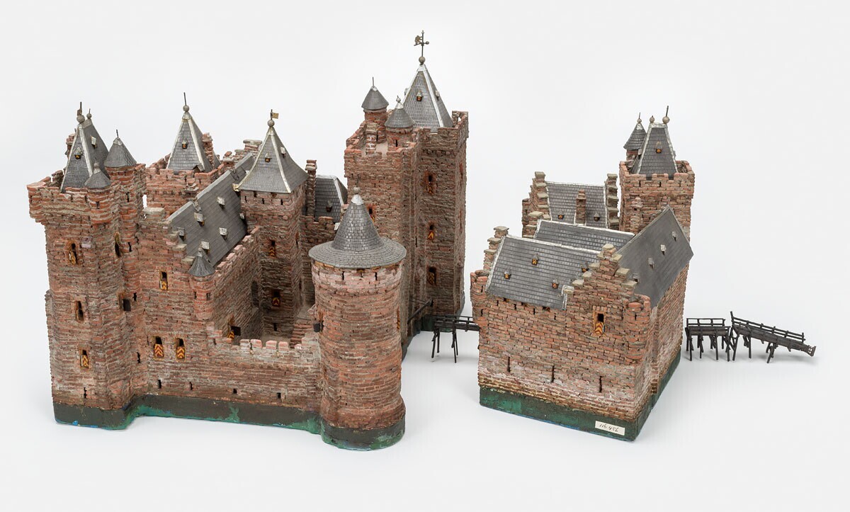 Maquette van kasteel Brederode, vervaardigd uit miniatuur bakstenen. Bestaat uit twee losse delen; de voorburcht en het hoofdgebouw.