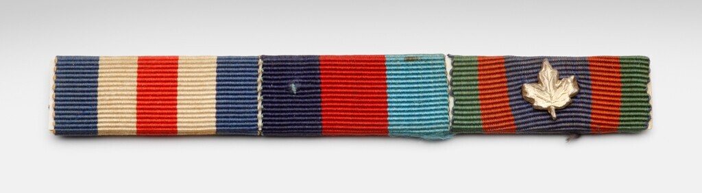 Een balk met drie onderscheidingstekens om één kartonnen strip genaaid. De eerste bestaat uit een blauwe, een witte, een rode, een witte en een blauwe baan. De tweede uit een zwarte, een rode en een lichtblauwe baan, De laatste uit een groene, een rode een donkerblauwe, een rode en een groene baan. Op deze is een metalen speldje in de vorm van een Maple Leaf gespeld.