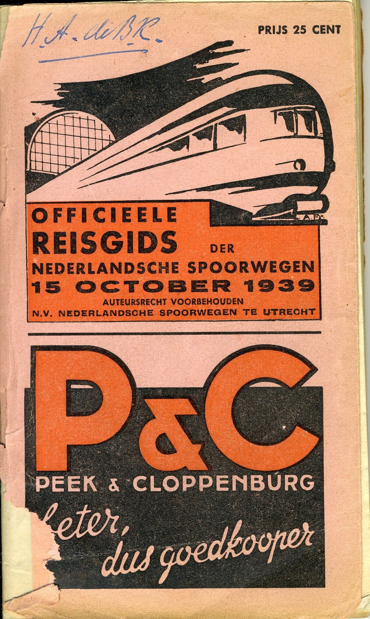 Dienstregeling van de 'Nederlandsche Spoorwegen'. Ingangsdatum: 15 oktober 1939.