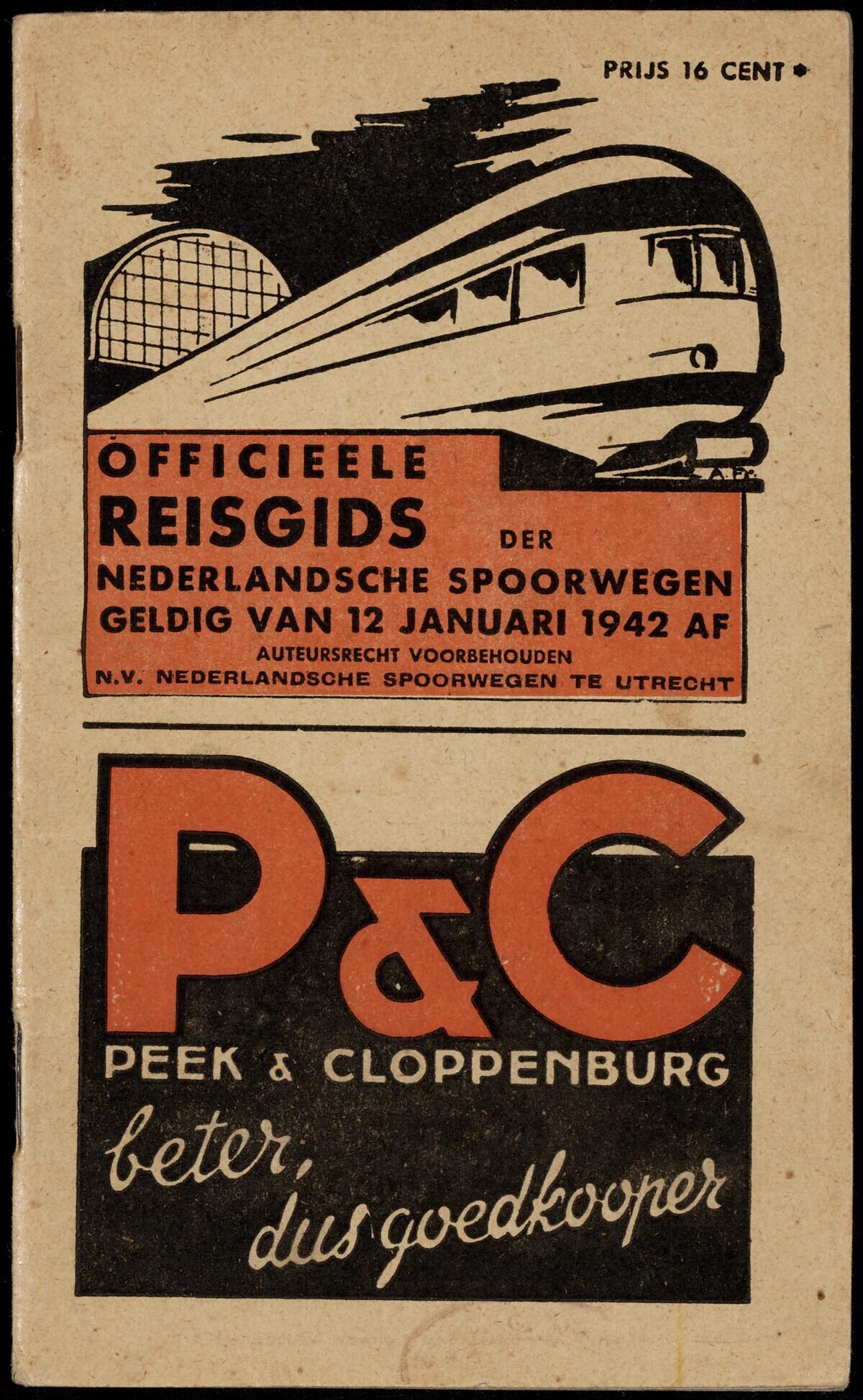 Een vijftal dienstregelingen van de Nederlandsche Spoorwegen, geldig respectievelijk vanaf 12 januari, 4 mei, 13 juli, 24 augustus en 2 november 1942. Nederlands- en Duitstalig.