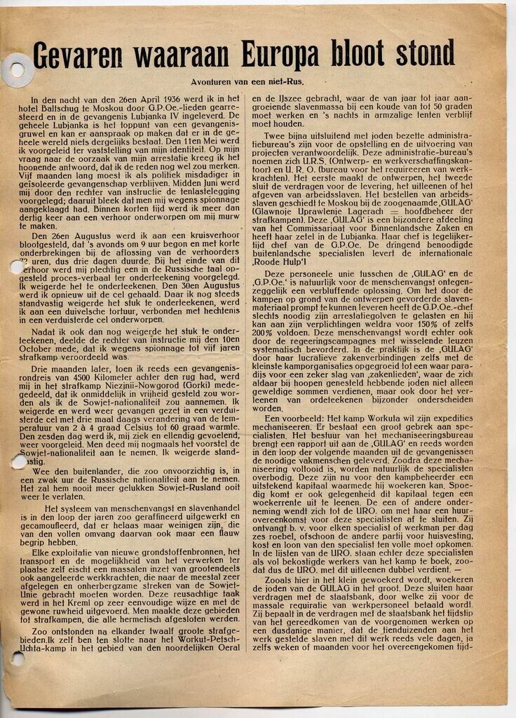 Een 'ringbandalbum' van het merk "Duopress" met een zwarte kartonnen kaft. Op de rug de titel: "Nederland 21 Sept. 1939 - 9 Mei 1940". In het album zijn op doorzichtige vellen papier krantenknipsels geplakt die gaan over alles wat met de oorlog in deze periode te maken heeft. Tussen de geplakte krantenknipsels zijn ook andere documenten te vinden in het album:<br>- een vlugschrift "ter verspreiding van de waarheid.." met de titel "Gevaren waaraan Europa bloot stond. Avonturen van een niet-Rus", uitgever President Heinrich Kessemeier te Hamburg.<br>- een pamflet in kleurendruk met de afbeelding van een besmeurde Amerikaanse vlag. Een hand reikt naar de vlag. Op de mouw van de arm staan Japanse(?!) karakters. Waarschijnlijk refereert het pamflet aan de Japanse aanval op Pearl Harbour, 7 december 1941.<br>- een zwart-wit foto van matrozen van de Kriegsmarine bij een kameel met kamelendrijver. Mogelijk gemaakt in Egypte.<br>- een kerstwens in kleurendruk met de tekst: "Der Kriegsmarine am Kanal. Frohes Fest! Kriegsweinachten 1941".<br>- een kerstwens met kleurpotlood gemaakt op een klein rechthoekig blauw labeltje met een roze touwtje. Boven een landschap met een huisje en bomen staat: "Frohe Weinachten 1941".<br>- een met kleurpotlood gemaakt tekeningetje van een vissende 'kabouter'. Hieronder staat '4x'.