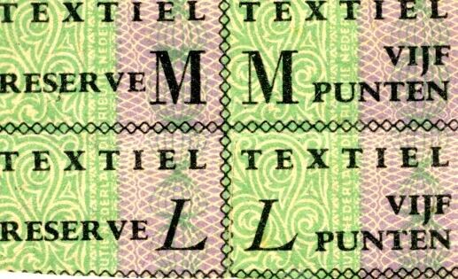 Vier textielbonnen. Op de achterkant staat met pen geschreven: "Jan en N(elly?) Gouda".