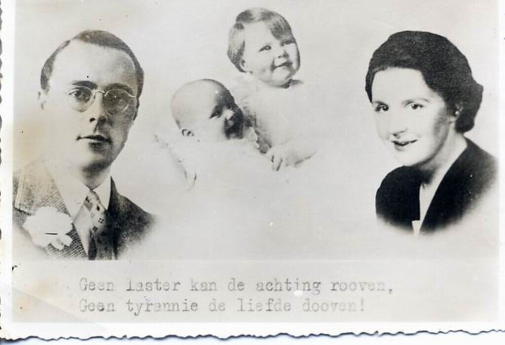 Collageachtige foto met portretten van prins Bernard, prinses Irene, prinses Beatrix en prinses Juliana. Onderschrift: "Geen laster kan de achting rooven, geen tyrannie de liefde dooven!" Dergelijke foto's werden door geallieerde vliegtuigen boven Nederland uitgestrooid om de Oranjegezinde bevolking een hart onder de riem te steken. Ze werden dan ook graag verzameld en onderling geruild. De Duitse bezetter probeerde dit tegen te gaan door het bericht te verspreiden dat deze foto's spontaan in brand konden vliegen. Hierdoor kregen ze de naam 'brandplaatjes'.