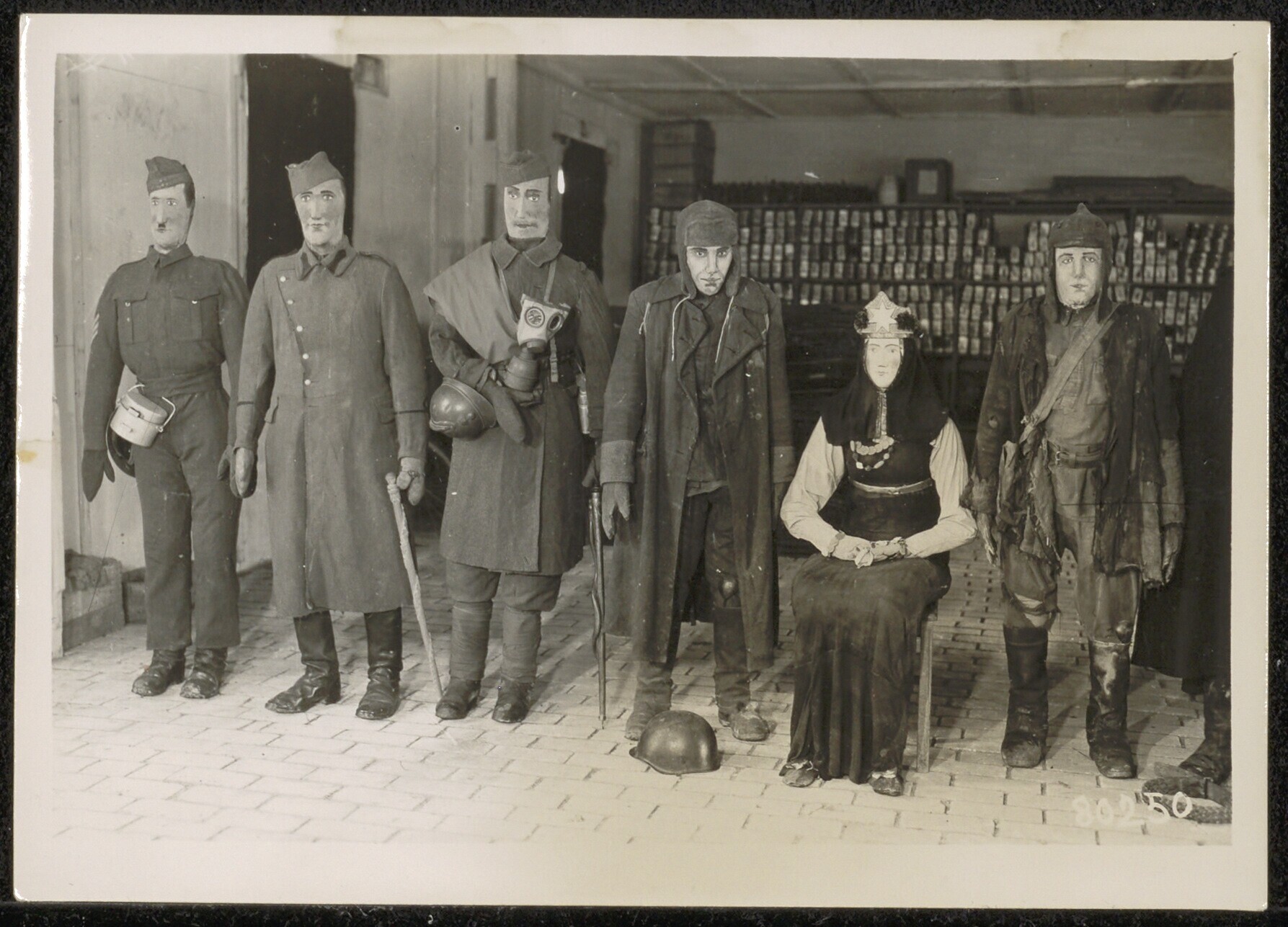 Acteurs met maskers in krijgsgevangenenkamp Mühlberg