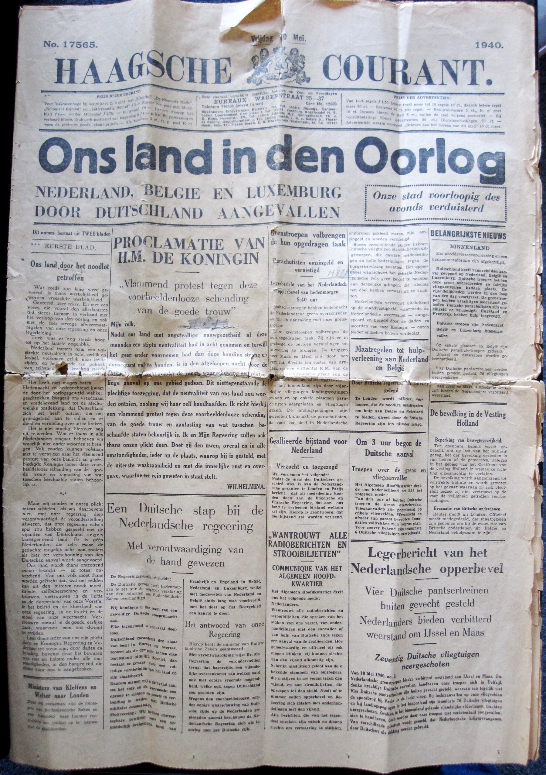 Een exemplaar van de Haagsche Courant van 10 mei 1940.