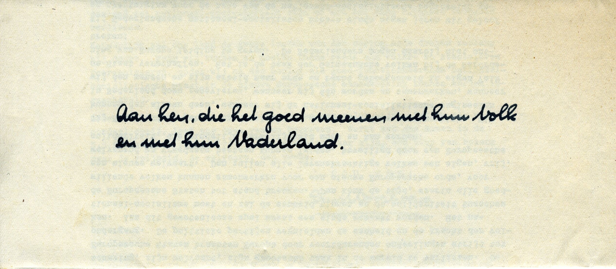 Een brief van de Nationaal-Socialistische Beweging in Nederland gedateerd: Amsterdam, 1 Januari 1941 gericht "Aan hen, die het goed meenen met hun Volk en Vaderland!" met onderaan: "Hou Zee!!" en ondertekening door Erns Voorhoeve.