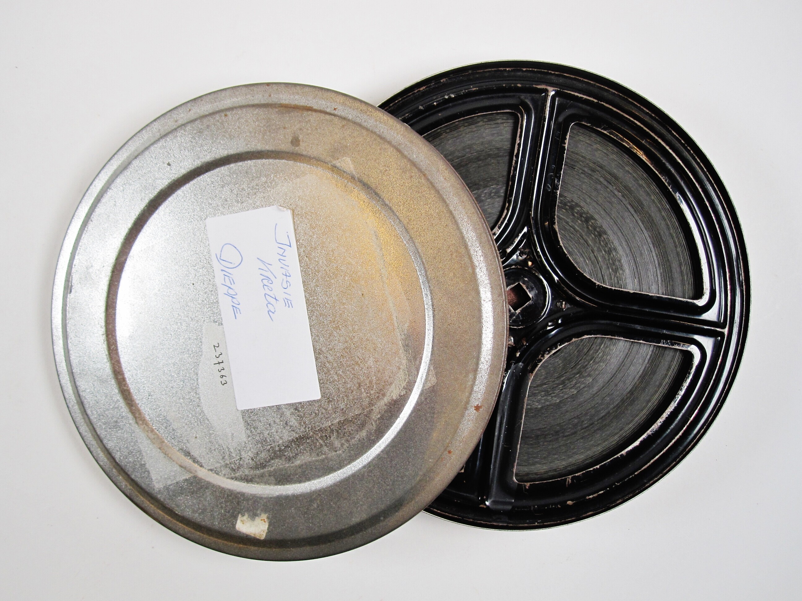 Een Duitse propagandafilm in zwartwit van de Duitse invasie van Kreta in 1941 en het afslaan van de geallieerde aanval door de Duitsers te Dieppe In Normandië in 1942 op een metalen spoel.