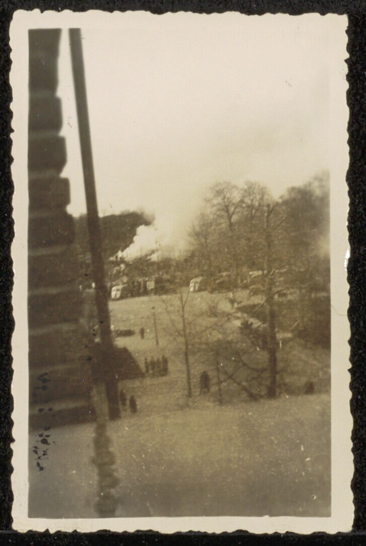 Serie van dertien zwartwit foto's van de gevolgen van het bombardement op villa Kleykamp waar het Centrale Bevolkingsregister was gevestigd, genummerd 1 t/m 13, voorzien van het stempel: "Gebombardeerd 11 Apr. 1944, Opname: 12 Apr. 1944" en stempel fotograaf: initialen: vV (A. van Vliet).