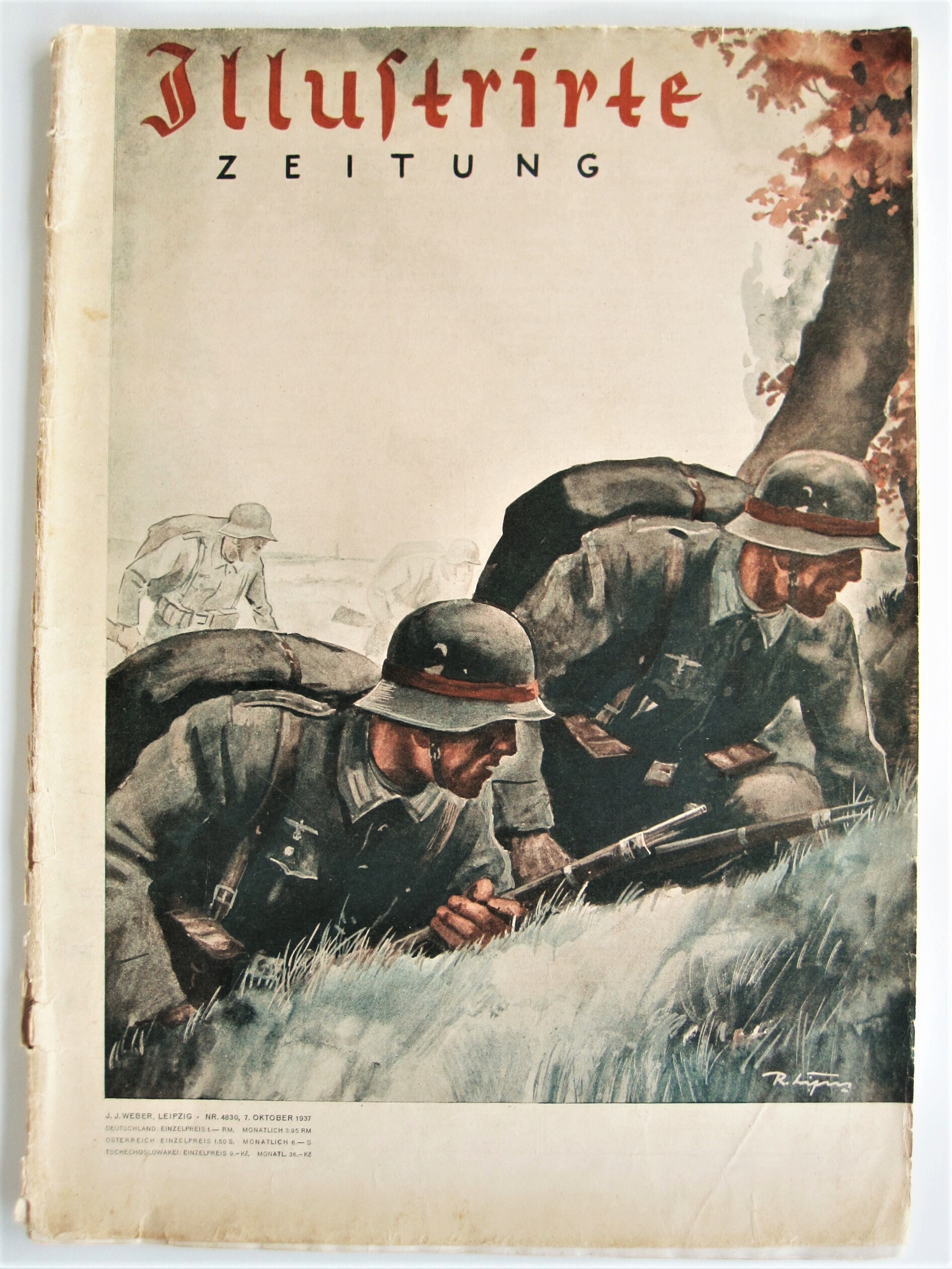 Exemplaar van de Illustrirte Zeitung. Het betreft de uitgave uit oktober 1937. In het tijdschrift artikelen over de Wehrmacht en over een bezoek van Mussolini aan Duitsland.
