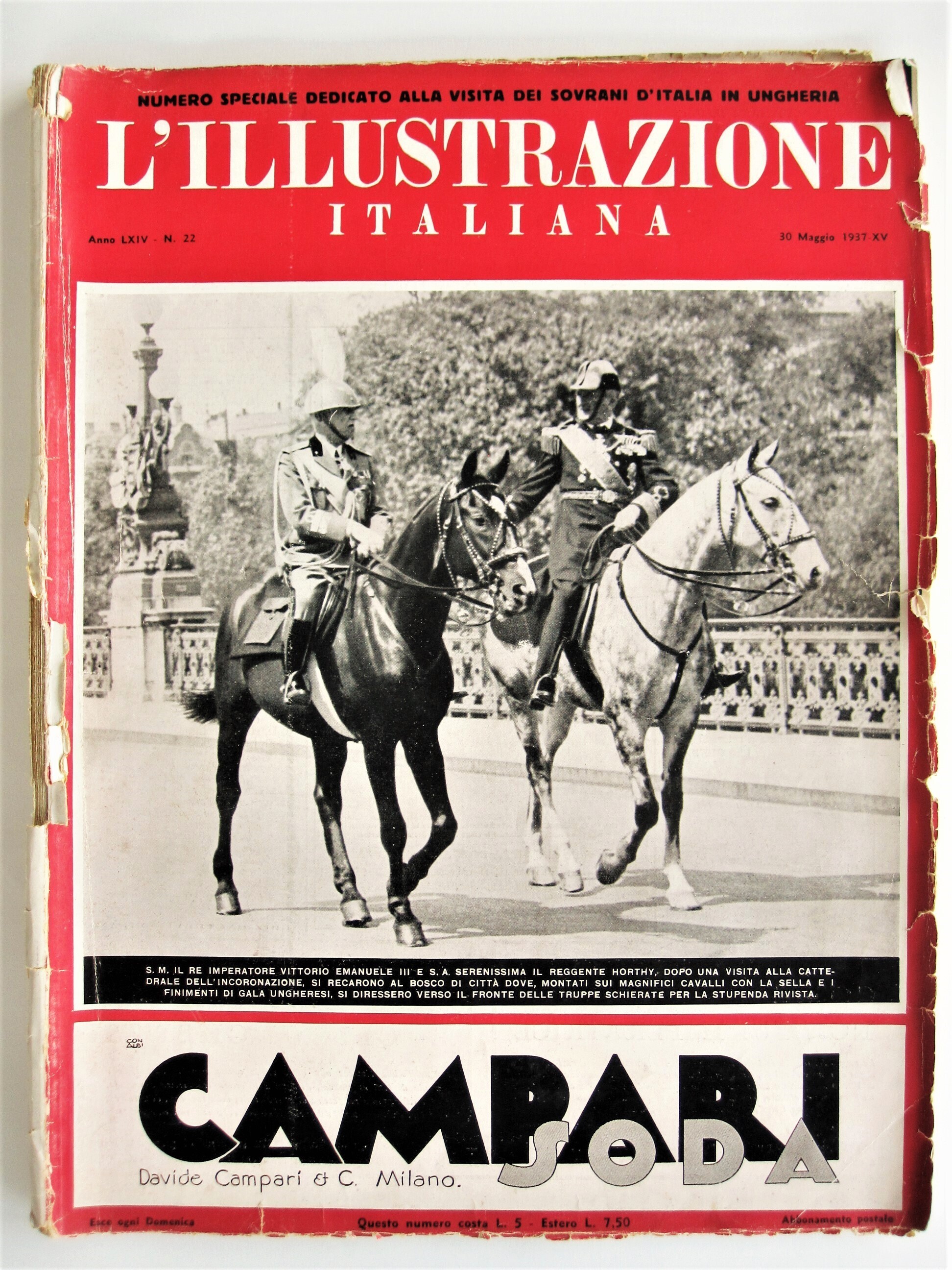 Editie van het tijdschrift L' Illustrazione Italiana van 30 mei 1937. In het blad wordt onder andere aandacht besteed aan Mussolini en de relatie tussen Italië en Hongarije.