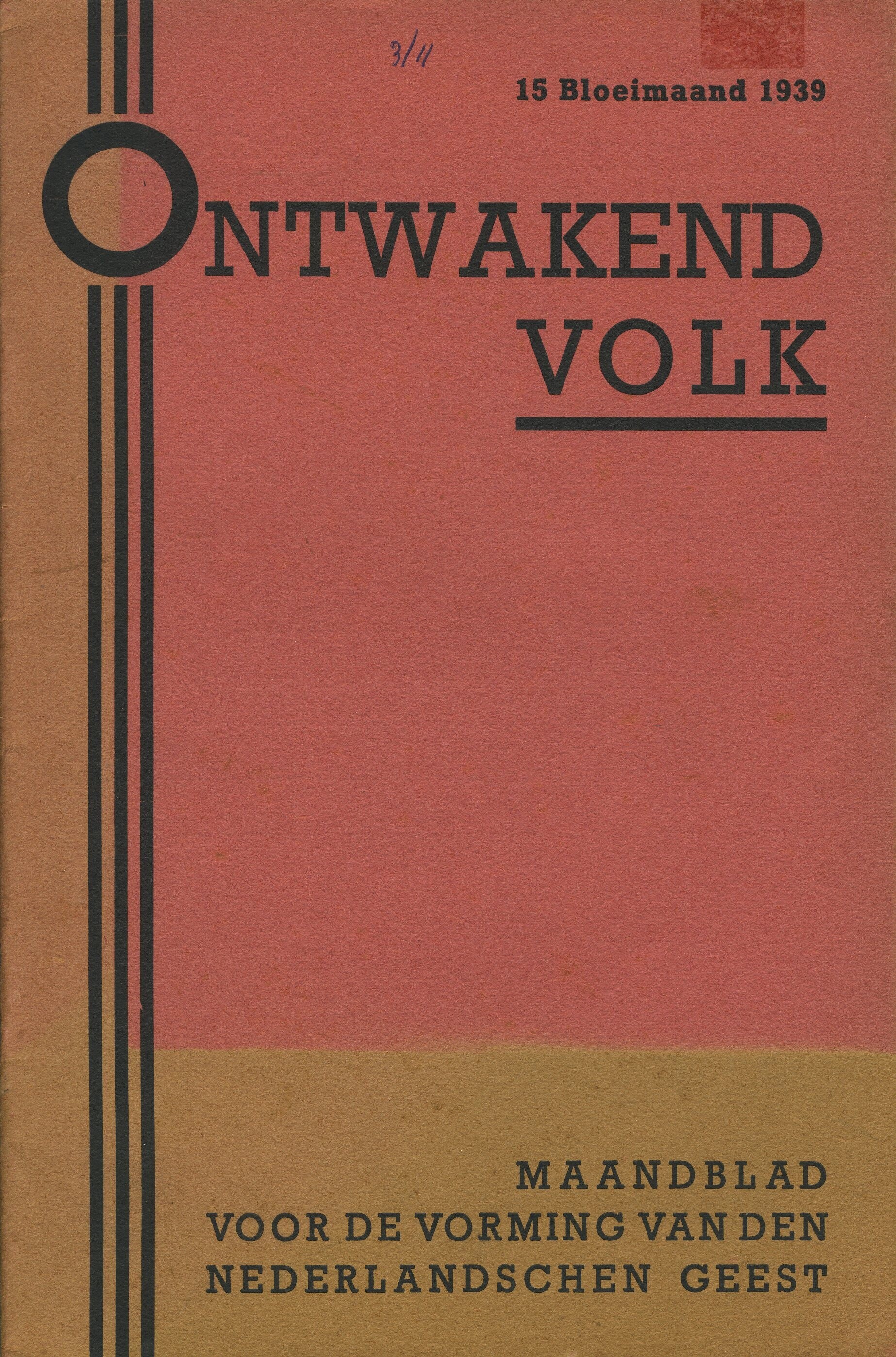 Een exemplaar van ''Ontwakend Volk, maandblad voor de vorming van den Nederlandschen geest'' van de N.S.B. Het betreft de derde jaargang nummerr 11., Bloeimaand 1939 (mei 1939).