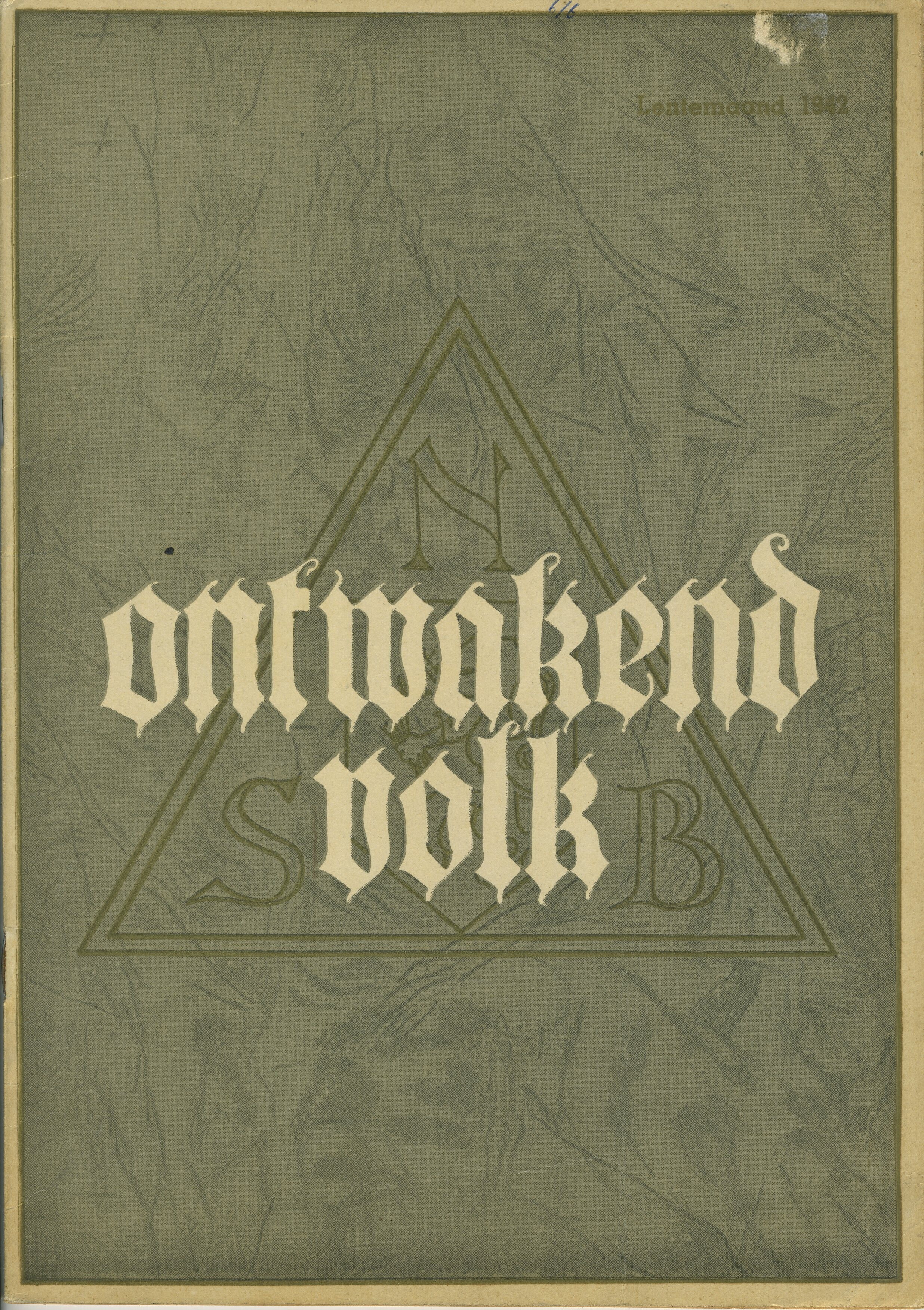 Een exemplaar van ''Ontwakend Volk, maandblad voor de vorming van den Nederlandschen geest'' van de N.S.B. Het betreft de zesde jaargang nummer 6., Lentemaand 1942 (maart 1942).