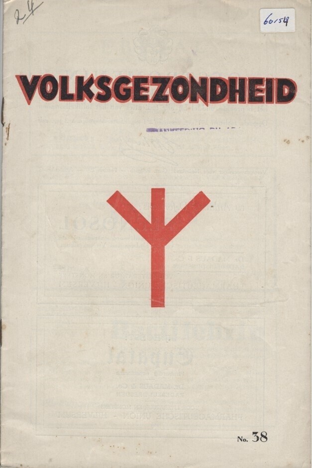 Een uitgave van "Volksgezondheid. Orgaan van Medisch Front". Het betreft de vierde jaargang, nummer 38 van 28 Oogstmaand (augustus) 1944 met o.a. artikelen over "De ontwikkelingsgang der gezondheidsleer" en "De verhouding tusschen volk en staat op het gebied der volksgezondheid" en een "Programma van het Erfbiologisch Congres van 7-10 Sept. 1944 van den "Dienst voor Ras- en Erfgezondheidszorg" in Hotel "Krasnapolsky" te Amsterdam".