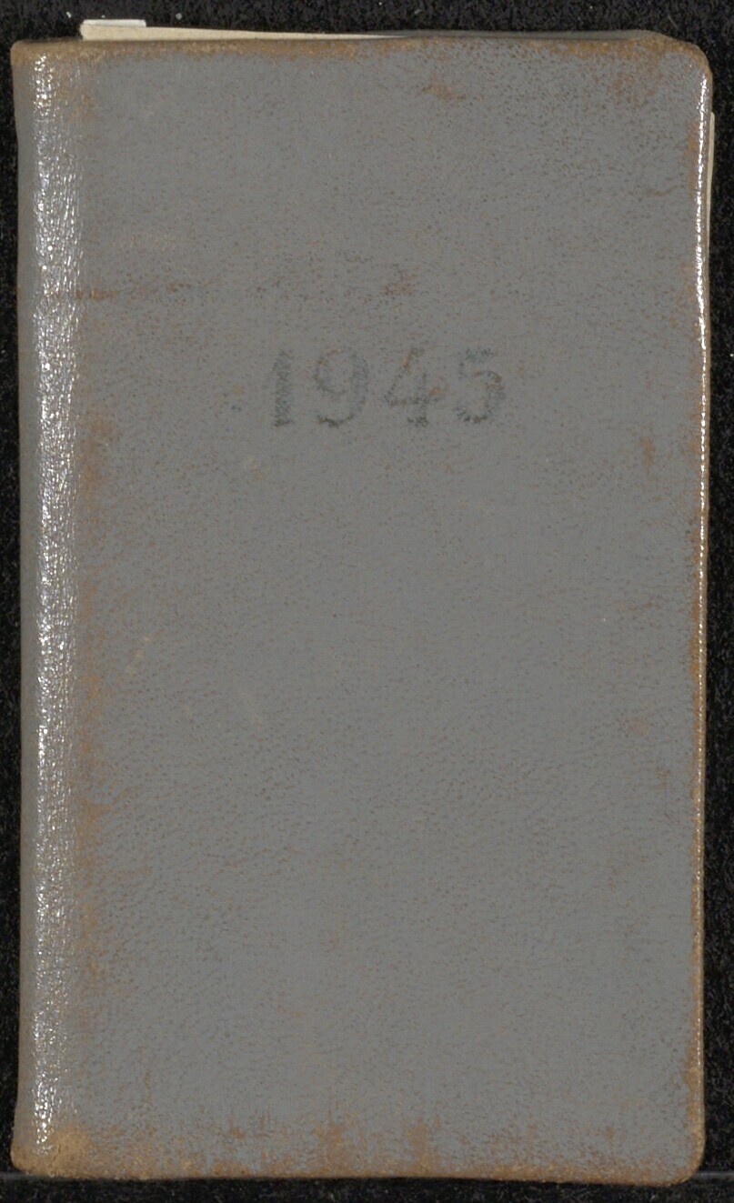 Deze agenda uit 1945 is de zesde uit een zet van zes agenda's waarin een dagboek is bijgehouden door Jan Poppezijn tussen 1940-1945. De agenda's 1940 t/m 1942 dragen op de voorkant het logo van de Nederlandsch-Indische Levensverzekering- en Lijfrente-Maatschappij (NILMIJ). Het gezin Poppezijn, vader Jan, moeder Lydi en hun twee dochtertjes Hannie en Bonnie, woonde in een bovenhuis aan de Begoniastraat 14 te Den Haag. Op het moment dat de oorlog uitbrak was het gezin van elkaar gescheiden. Jan Poppenzijn bevond zich voor zijn werk bij de Rijksgebouwendienst in Vlissingen. Zijn vrouw en dochters waren thuis in Den Haag. Dochter Hannie heeft de tekst in agenda's met een relatie tot de oorlog gemarkeerd. Een selectie: - agenda 1940: Jan Poppezijn alleen te Vlissingen: 10 mei "Oorlog met Duitschland (koffer gepakt). Luchtafweer in actie. Aanval van vliegtuigen op Vlissingen."; 11 mei "Luchtalarm en allen in kelder of naar huis"; 12 -17 mei "Aanval van bommenwerpers op Vlissingen. Bellamypark, Nieuwedijk en gedeelte Walstraat onbewoonbaar geworden. Naar de verwoesting gaan kijken van bomaanval en naar neergestort Fransch vliegtuig (in huis gevlogen; 5 dooden). Middelbrug in brand. Capitulatie van Holland. Overgave van Zeeland. Zal ik mijn lieve Bonnie, lieve Hannie en l. Mama nog levend weerzien?"; Terug in Den Haag: 1 augustus "Villa Stolkweg 21 (Duitsche marine bezetting)"; 13 september "foto's laten maken voor legitimatiebewijs (na 10u. 's avonds op straat te zijn)"; 21 september "Toegang strand verboden en afgesloten."; 21 oktober "Naar voormalige Paleis Prinses Juliana (thans bezet gebouw)". - agenda 1941: Vrij normaal leven mogelijk. Bonnen voor etenswaar. 3 maart "Van ca. 11-12 luchtalarm. Bom gevallen in Westeinde"; 2 april - 5 april "P.V. leiders in hechtenis genomen. A.P.V. verboden en ontbonden verklaart. Gelden in beslag genomen en materiaal en persoonlijk bezit"; 15 mei "Schip Tufa(?) getorpedeerd"; 15 juli "Na eten inleveren metalen onderzocht (keteltje enz.)"; 31 juli " 's-middags van 3-4 in perceel L. Voorhout (Duitsche Dienstpost); 1 augustus "Bommen op Kiplaan. 3 huizen in puin; eenige dooden en gewonden"; 29 oktober "ca. 1/2 1 - 1/2 3 luchtalarm"; 22 november "Parkweg 18 (Duitsche politie) zg. lekke ketel". - agenda 1942: 15 mei "Appèl Holl. officieren"; 16 mei "Bericht arrestatie van ca. 2000 Holl. officieren"; 30 mei " 's-Nachts zware aanval door R.A.F. op Keulen"; 1-2 juni " 's-Nachts zware aanval door R.A.F. op Duisburg en Oberhausen. Keulen"; 2-3 juni "Aanval door R.A.F. ('s-nachts) op Essen e.omstr."; 19-21 juli "Massa-rijwieldiefstal. Stallingen leeggehaald enz."; 23 juli "Fiets kwijt"; 24 juli " 's-Middags fiets terug"; 18-24 oktober "Evacuatieberichten. Begoniastraat moet "plat" i.v.m. tankgracht"; 1-7 november "Grote terugtocht van Duitsch-Italiaansche troepen uit Egypte"; 8-14 november "Amerikaansche inval in Fransch-Noord-Afrika"; 16-21 november "Bonnie geen school wegens evacuatie. Ontruimingsinstructie bezorgd door politie"; 29 november-1 december "Bonnie adresveranderingskaarten gepost. Definitief verhuisd naar Kerkstraat 35a. Huis ouders Poppezijn. Deze naar Amerongen om plaats te maken"; 14 december "Morgen naar Amerongen"; 4-6 december "Berichten over evacuatie voor Rijksdienst naar Deventer"; 31 januari "Langs Boschlaan (bij Maliebaan) gekeken naar "tankval"?". - agenda 1943: toegevoegd briefje: "Halverwege jaar radioluisteren niet meer mogelijk"; 18 februari "Ausweis für Sperrgebied gevraagd. Naar gedeelte van Göbbels rede geluisterd"; 19 februari "naar Rijkscomm.iaat. Brief mee (voor ausweis) aan Polizei offizier"; 20 februari "Ausweis für Sperstunden bij Grüne Polizei Plein 1813 no. 4"; 1 maart "Uitgaansverbod met 1 u. verkort. 's Avonds 9u binnen."; 20 maart "Jeugdstorm met bands zien passeren"; 21 maart "Even naar rede van Hitler geluisterd"; 28 maart "Veel vliegtuigen en luchtafweer"; 21 april "1/4 12 luchtalarm"; 29 april "Aanmeldingsplicht voor voorm. Nederlandsche leger. Wordt wederom beschouwd als krijgsgevangen"; 30 april "Staking in diverse bedrijven"; 4 mei "Bommen op Den Haag (telefoongeb. enz.)"; 5 mei "Treinstagnatie 6-15 bomexplosie. 's Morgens ca. 1/4 7 aan Staatsspoor - verboden toegang"; 22 juni "1/2 9 luchtalarm tot ca. 9u. 10.10 weer luchtalarm tot ca. 10u.40. Tot ca. 6u. op balcon gezeten en gelezen (luchtalarm ca. 10 min.)";17 juli "1/2 9 in Bankastraat - Luchtalarm tot ca. 9 1/4 u. Ca. 10.u op bureau. Bezoek van Knoll - Weer Luchtalarm tot ca. 1/4 11."; 25 juli "(voor de 2e maal luchtalarm)."; 26 juli "Mussolini afgetreden"; 27 juli "Naar Amerongen"; 26 oktober "Contrôle van 2 luchtbeschermingsmannen. Zolderkamerverduistering laten zien"; 7 december "Contrôle (in de trein van Apeldoorn naar Den Haag) door Groene Politie. Alle mannen in 3e kl. wachtkamer gestuurd en daar onderzocht op papieren enz."; 11 december " 's Avonds 9u Binnen Zijn!" - agenda 1944/1945: 22 januari "ca. 14 4 naar politiebureau voor "Ausweis" Scheveningen"; 30 januari, 24 februari en 4 maart "Luchtalarm"; 30, 31 maart en 1 april "Hout gehaald" uit Scheveningse bosjes; 11 april " 's Middags ca. 3 u. Bom op gebouw "Kleykamp". Groote consternatie"; 15 april, 8 mei "Luchtalarm"; 21 mei "Luchtalarm"; 5 juni "Rome gevallen"; 6 juni "Invasie in Frankrijk"; 14 juni "ca. 7u. Luchtalarm (vliegveld Eindhoven gebombardeerd)"; 13 juli "(1e dag gaslooze uren)"; 20 juli "Veel nieuws n.a.v. aanslag op Hitler"; 31 augustus " 's Nachts 1/2 1 Bezoek in eigen huis van Landwacht"; 1 september "In huis alles netjes achtergelaten"; 17 september "Poosje in kelder gestaan tijdens luchtaanval"; 6 oktober "Aanval op pont Elst"; 19 oktober "Electrische stroom afgesloten - geen licht meer - Naar evacuatiebureau."; 20 oktober "Naar gemeentehuis. Nieuwe adressen. Even bij de buren binnen voor luchtgevaar"; 21 oktober "Evacuatie van Rhenen en Elst". Nog wat gelezen bij kaarslicht"; 23 november "Inkwartiering van 4 soldaten"; 25 november "Bij Ortskomm.t. voor verzoek om fiets "Ausweis" 