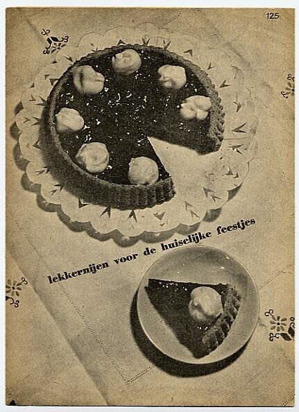 Folder met recepten die geschikt zijn voor tijden van schaarste. Op de voorkant een zwartwitfoto van een vlaai.
