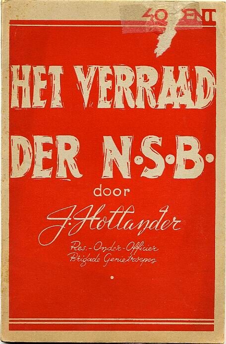 Een boek Het verraad der N.S.B."", een uitgave van nationaalsocialistische signatuur.
