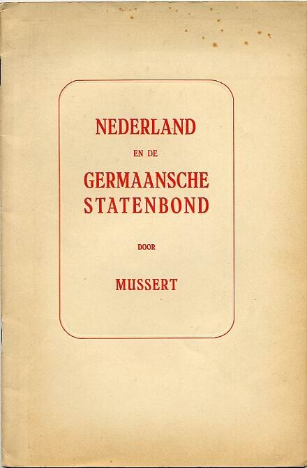 Een boek met een historische beschouwing over de ''Germaansche Statenbond'' geschreven door Anton Mussert. Hete boek telt 24 pagina's. De witgele kaft heeft een rode opdruk.