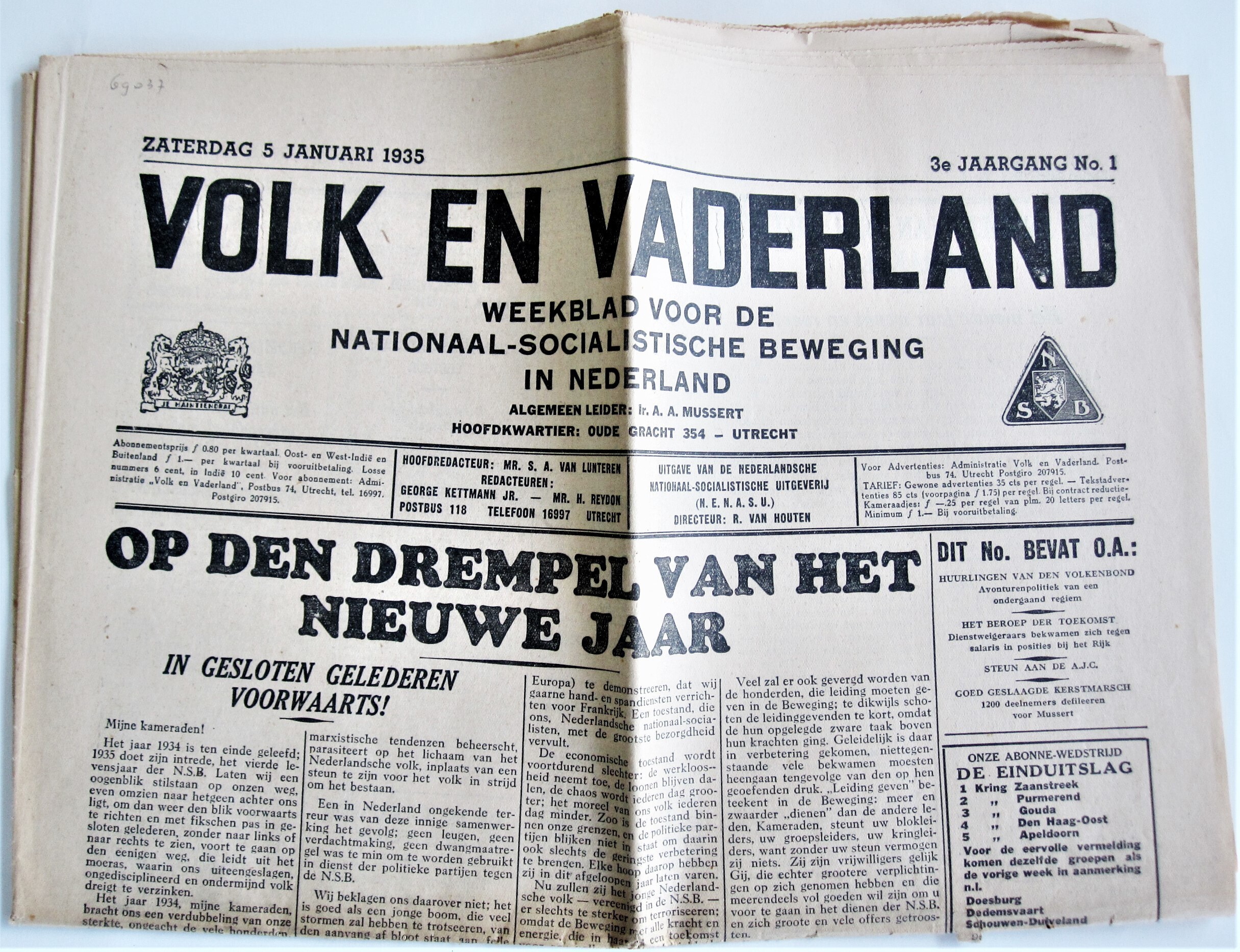 Extra-blad van 6 oktober 1936 van 'Volk en Vaderland', nationaalsocialistisch weekblad van de N.S.B.