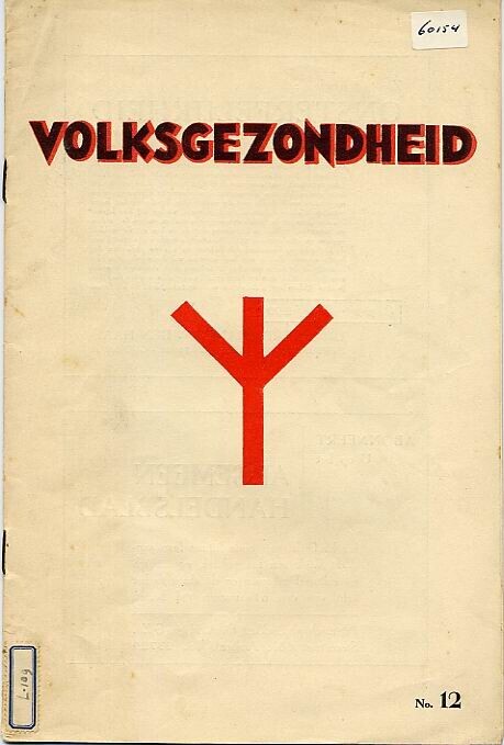 Een uitgave van "Volksgezondheid. Orgaan van Medisch Front". Het betreft de tweede jaargang, nummer 12 van 22 Bloeimaand (mei) 1942 met o.a. de "Verordening van den Rijkscommissaris voor het bezette Nederlandsche gebeid betreffende de Nederlandsche apotekers (Apothekersverordening)." .