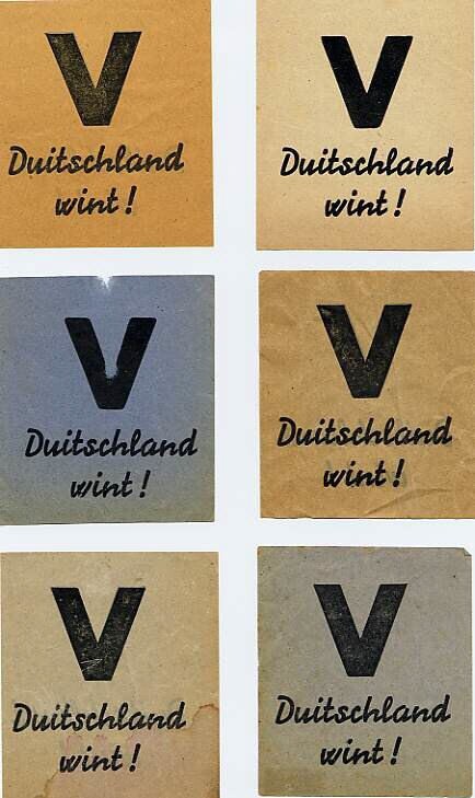Strooibiljet met aan beide zijde gedrukt: "V Duitschland wint!"