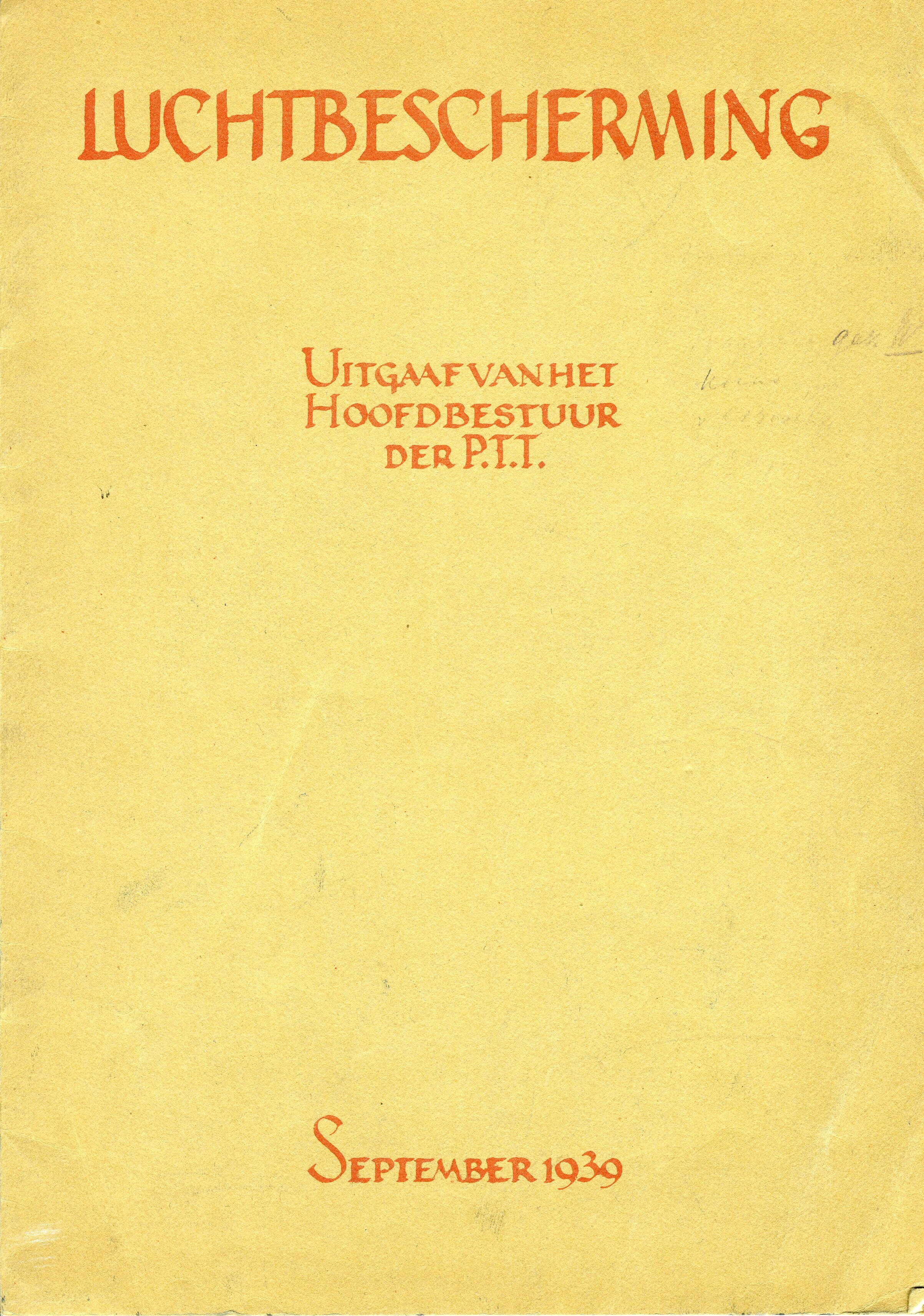 Een gestencild document waarin het bestuur van de P.T.T. de noodzaak van luchtbescherming uitlegt aan het personeel. De uitgave omvat 7 pagina's.