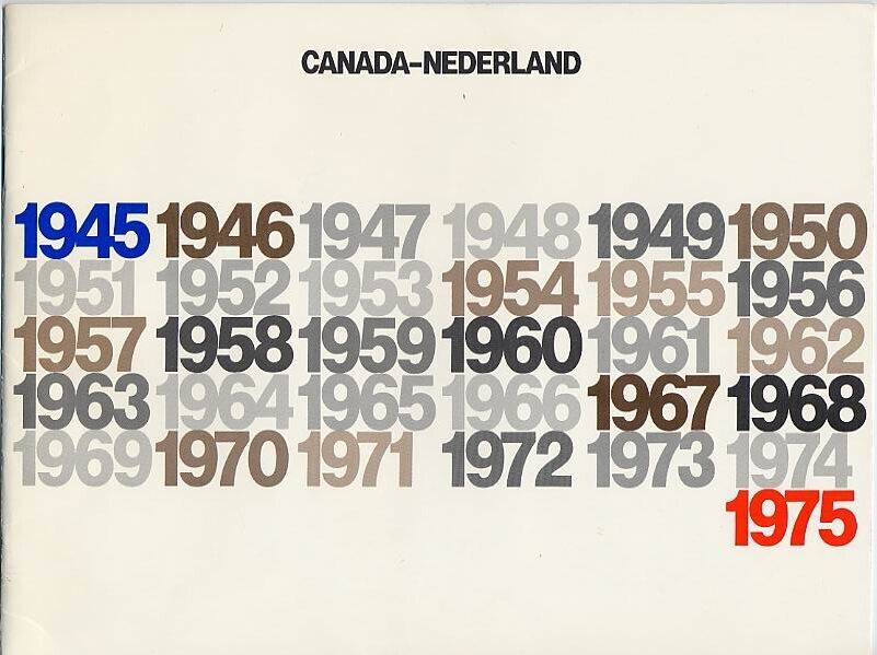 Een boek met op de witte kaft gedrukt:"Canada-Nederland" en de jaartallen van 1945 t/m 1975. Het boek bevat naast de tekst in het Nederlands, Engels en Frans, foto's en kaarten van de linies. Op de achterzijde afbeeldingen van de Nederlandse en Canadese vlag.