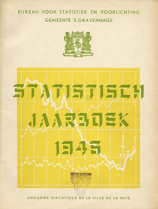 Jaarboek met statische gegevens over het jaar 1940-1945. Op de titelpagina een geelgroen vlak met de afbeelding van een grafiek met daarboven het wapen van de stad Den Haag. Het boek omvat 112 pagina's.