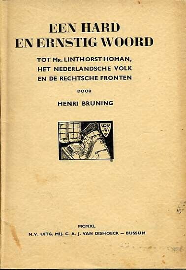 Een 36 pagina's tellend boekje getiteld: "Een hard en ernstig woord tot Mr. Linthorst Homan, het Nederlandsche volk en de rechtsche fronten" waarin N.S.B. lid Henri Bruning zich kritisch uitlaat over de N.S.B. en het Nederlandse volk.