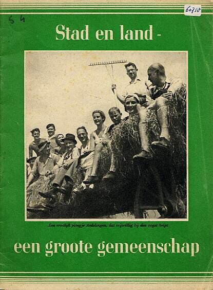 Geïllustreerde boekje over de Duitse Arbeidsdienst. De boek omvat 32 pagina's. Op de groene omslag in een kader een foto van mensen op een boerenwagen met onderschrift: "Een vroolijk ploegje stedelingen, dat vrijwillig bij den oogst helpt".