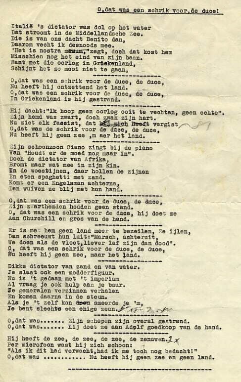 Gedicht met negen coupletten van ongelijke lengte over Mussolini.