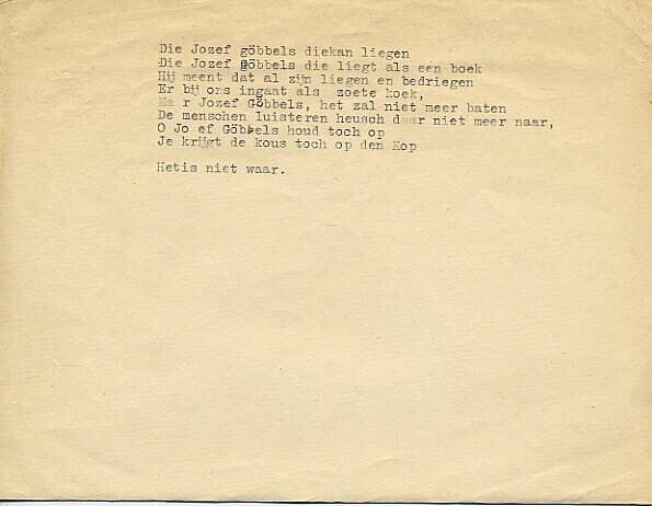 Gedicht van negen regels over de leugens van Joseph Goebbels.