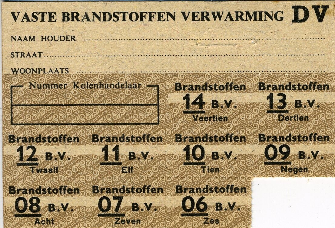 Gebruikte bruine Bonkaart DV voor "Vaste Brandstoffen Verwarming''.
