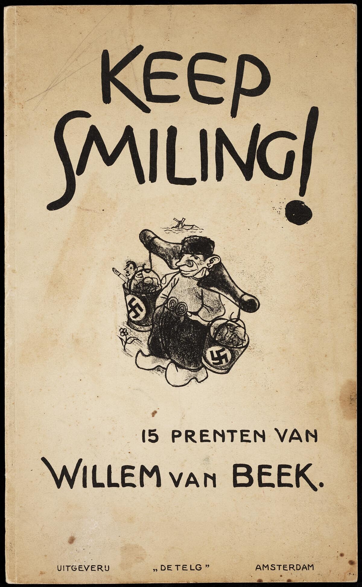 Uitgave met zwart-wit spotprenten die betrekking hebben op de Duitse bezetting van Nederland.