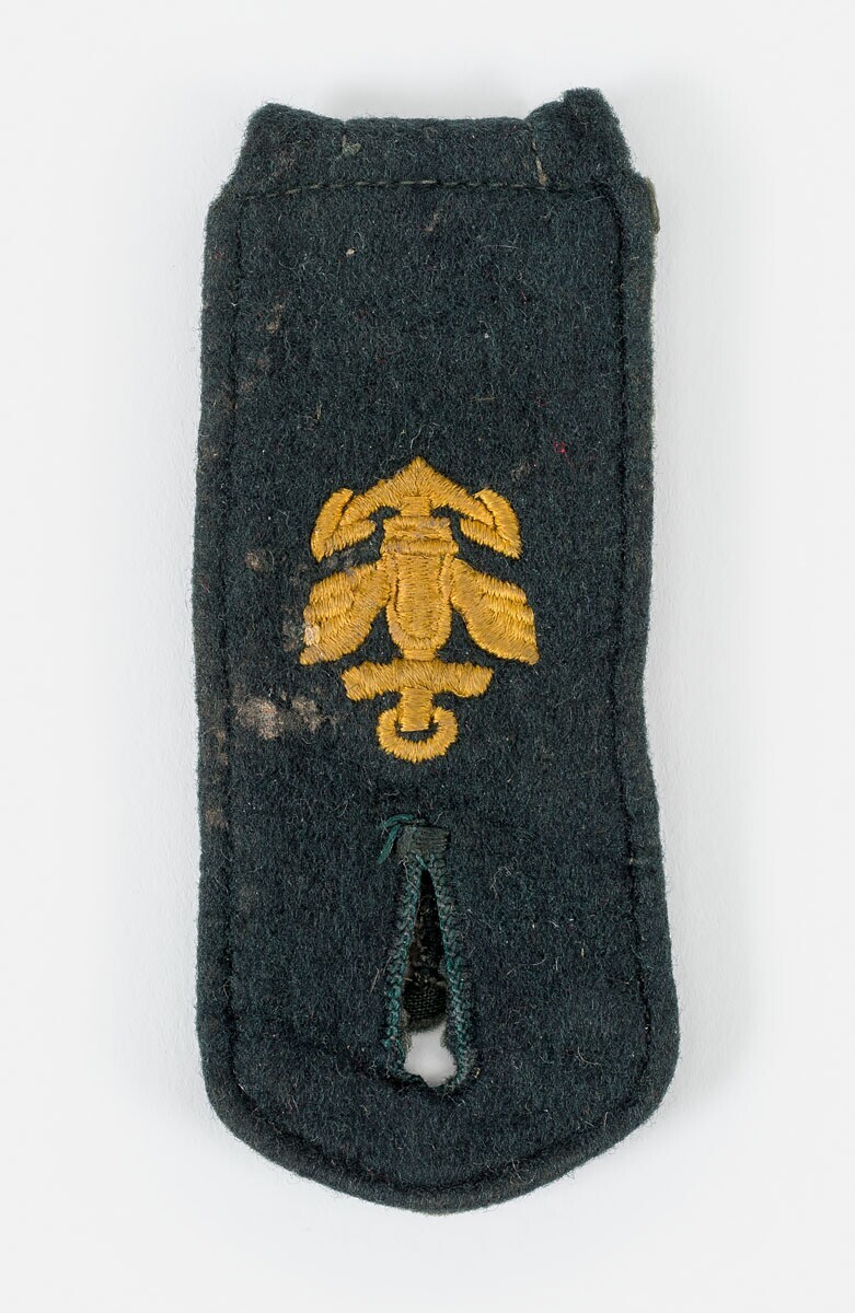 Een groen epaulet met goudkleurig anker van een lid van de Duitse marine. Mogelijk van een manschap van de Duitse kustartillerie.